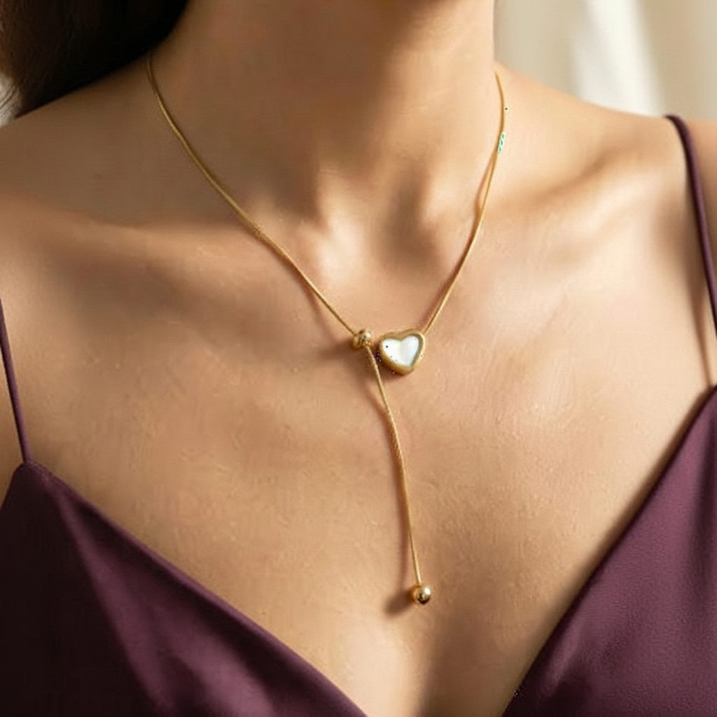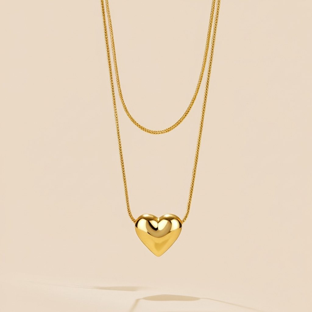 Women’s Gold Heart Bead Chain Necklace