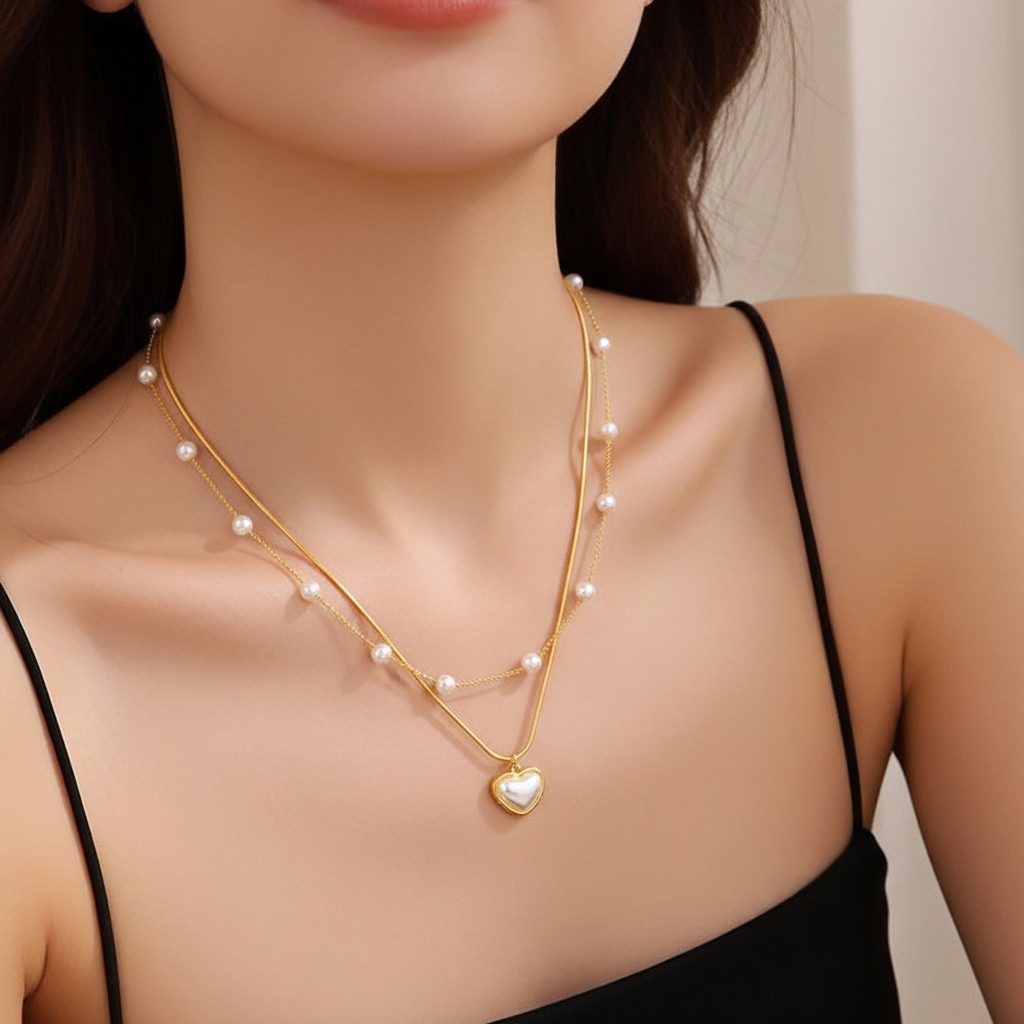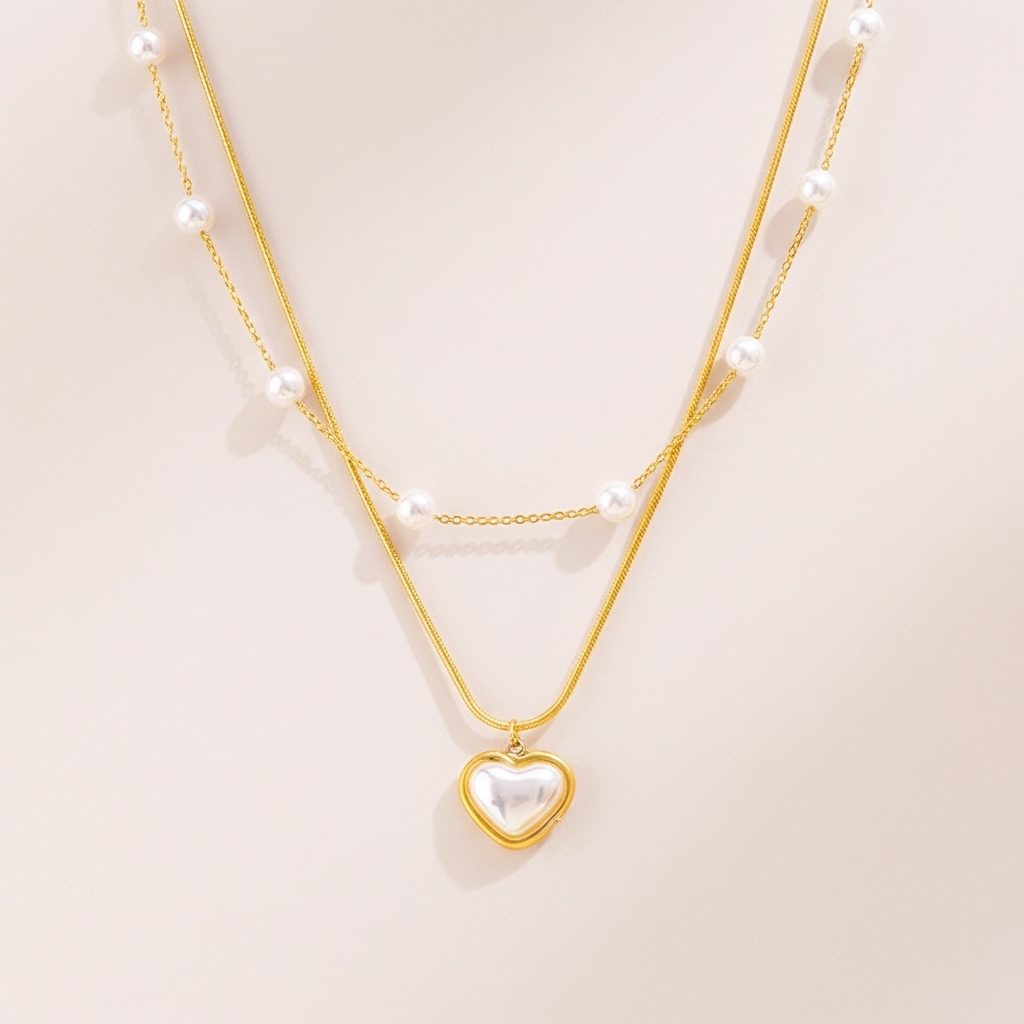 Women’s Pearl Heart Locket Layered Necklace