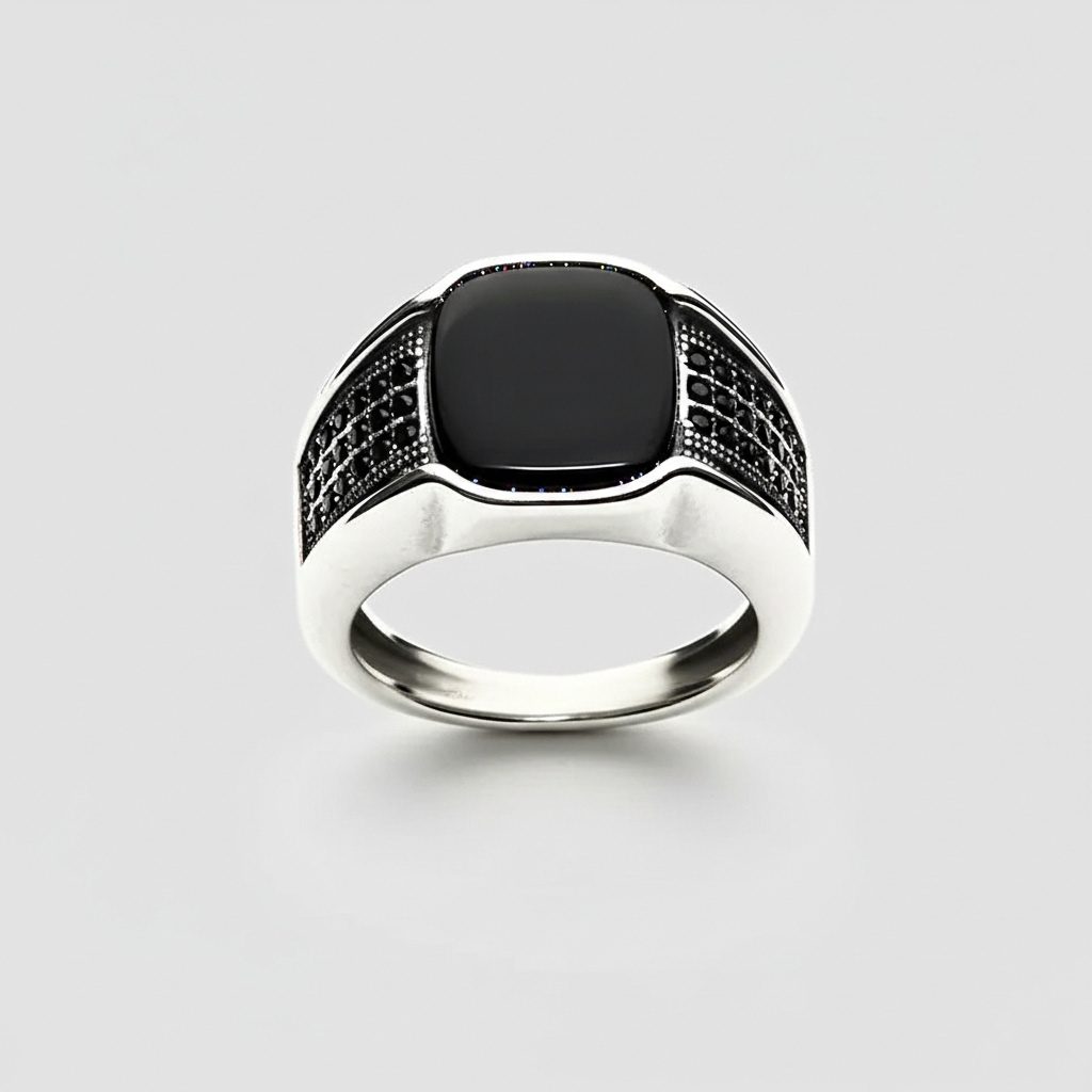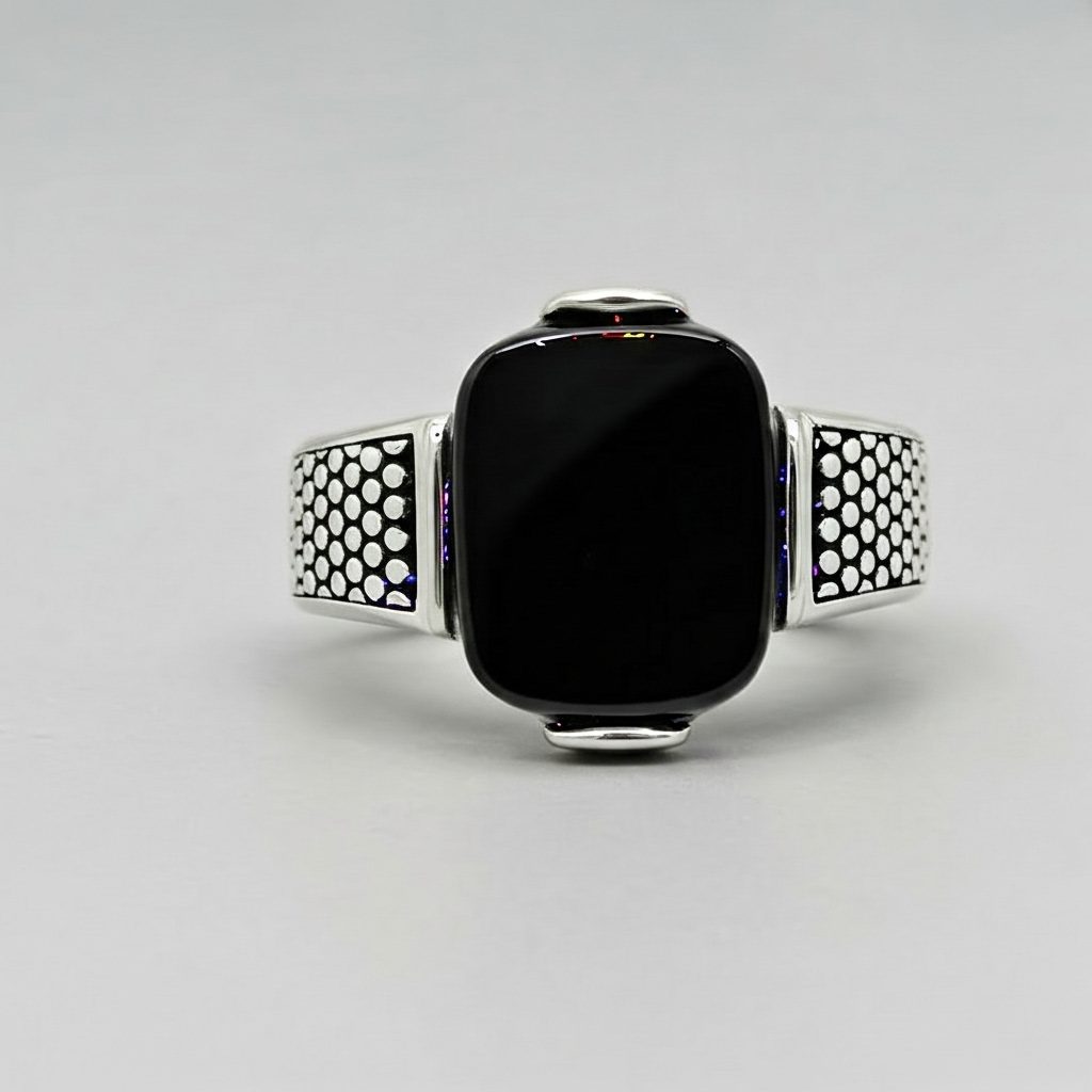 Men’s Black Onyx Textured Signet Ring