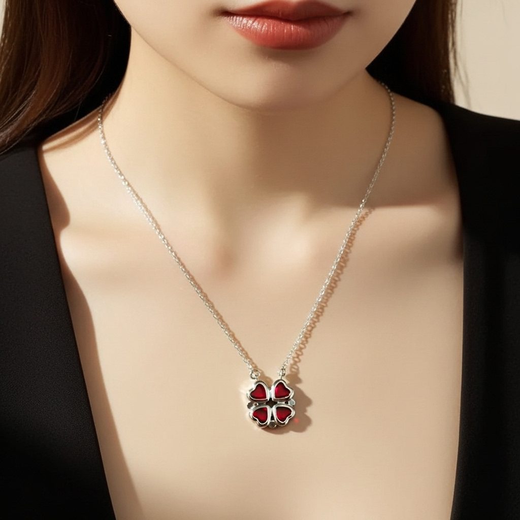 Women’s Red heart Clover Necklace