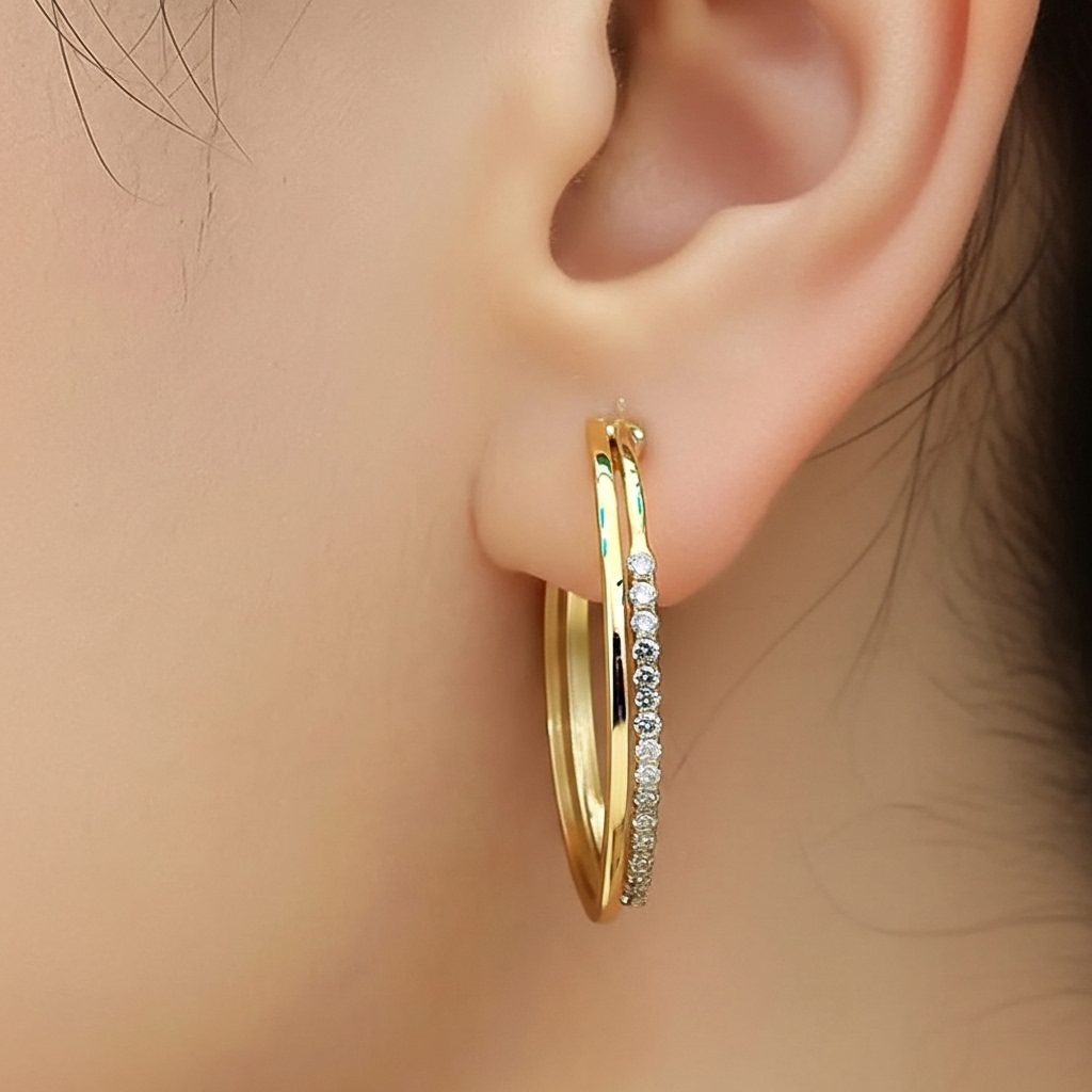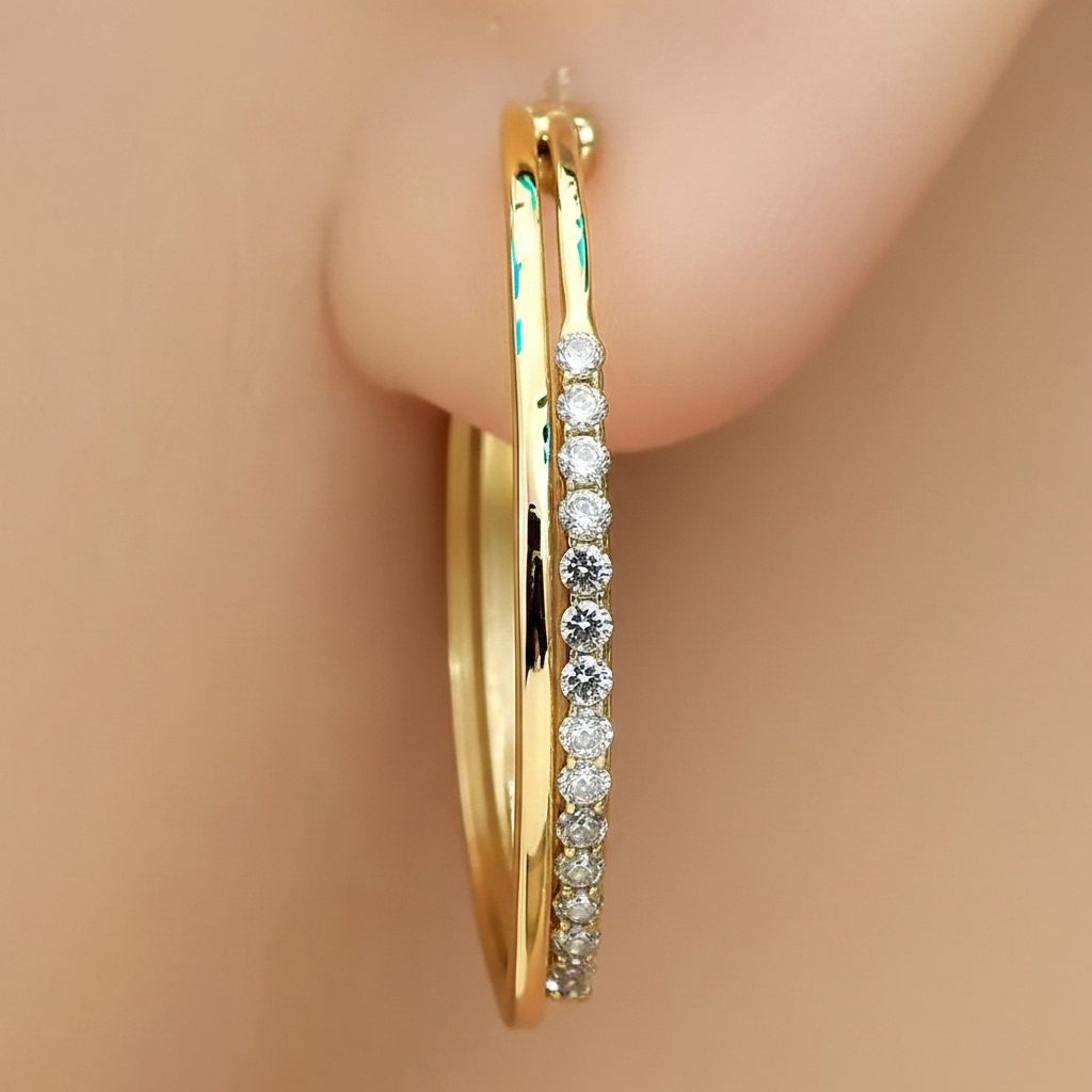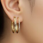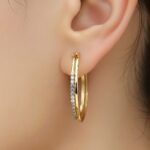 This modern gold double hoop diamond earrings showcase a chic layered hoop silhouette accented by full pavé cubic zirconia detailing along both bands. Made of high-quality stainless steel with luxurious gold plating, they’re corrosion-free, fade-free, and highly durable. The sleek contemporary style delivers effortless versatility ideal for everyday elegance or elevated occasion looks.