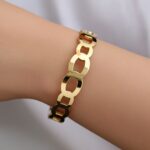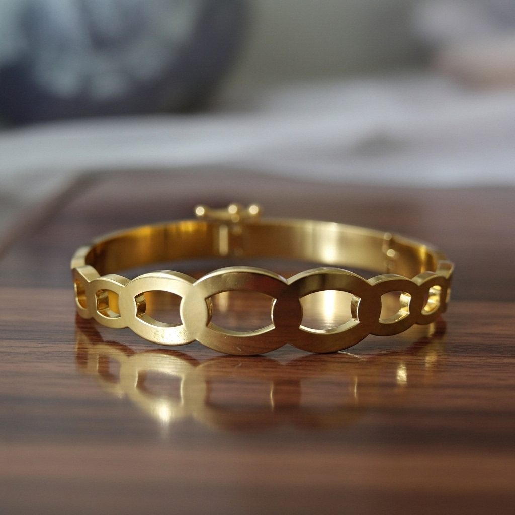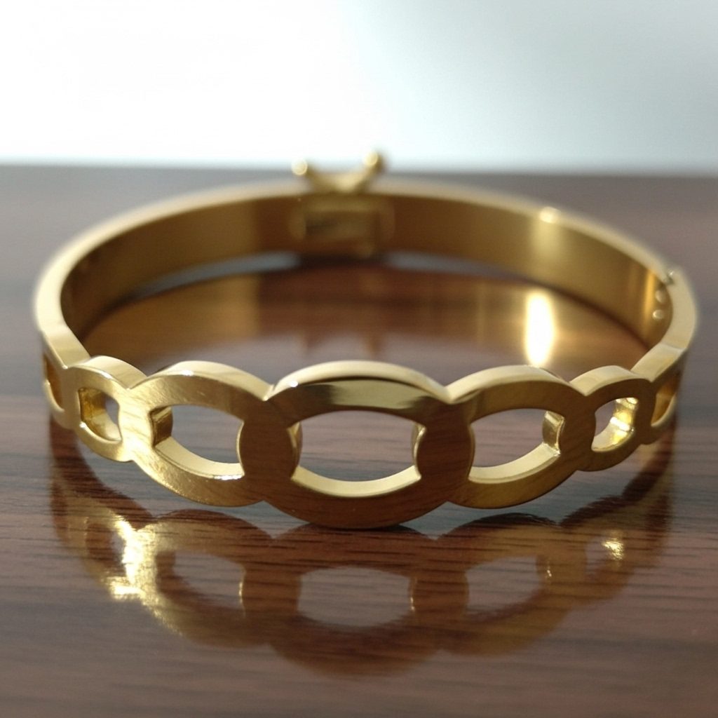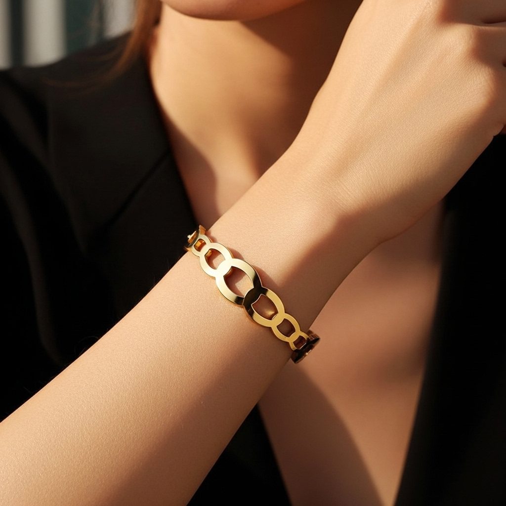 This sophisticated gold oval link bangle bracelet showcases a continuous chain of elongated oval links in a smooth, minimalist design with subtle shine. Made of high-quality stainless steel with luxurious gold plating, it’s corrosion-free, fade-free, and highly durable. The contemporary geometric style offers effortless elegance and all-day comfort for everyday or occasion styling.