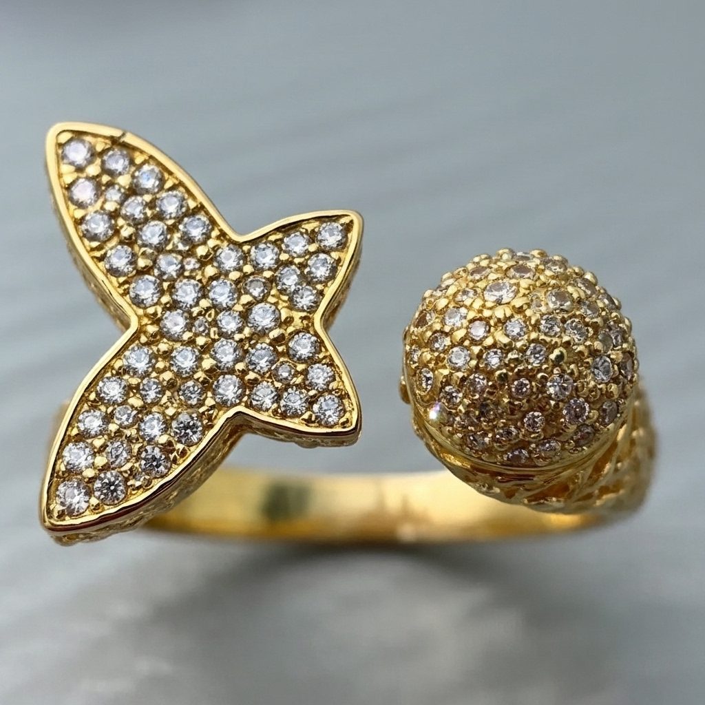 This gold stainless steel crystal cross ring features a modern open-band design adorned with a shimmering cross motif and a matching pavé sphere. Crafted from high-quality stainless steel, this durable piece is corrosion-free and fade-free to maintain its brilliant golden finish. Its fashionable and minimal aesthetic makes it a versatile choice for both daily wear and special occasion wear.