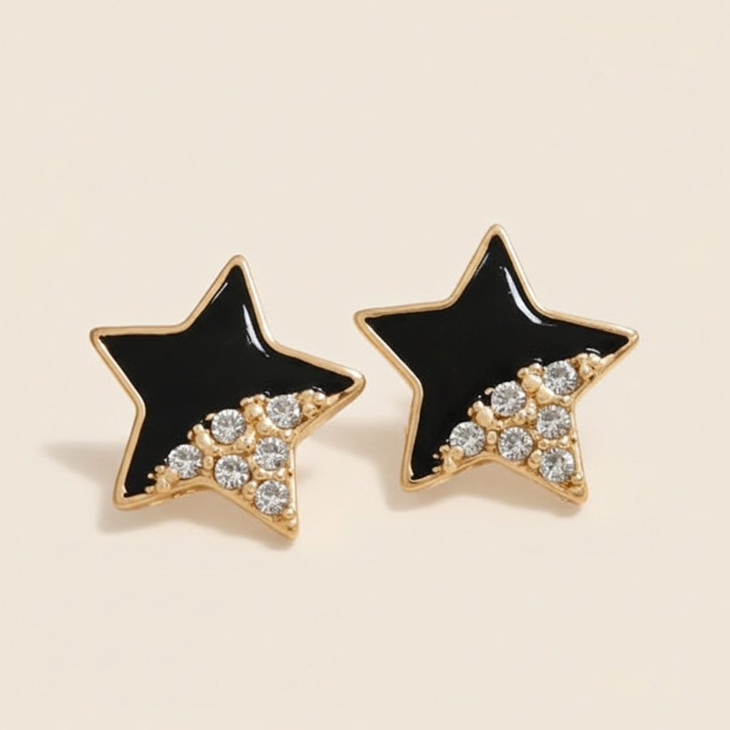 These gold star stud eartops with black enamel showcase a bold celestial design featuring a sleek black enamel star accented by sparkling crystal details. Crafted from high-quality stainless steel, they are corrosion-free, fade-free, and exceptionally durable for everyday confidence. Ideal for both daily wear and evening occasions, these modern women ear tops deliver effortless glamour with comfortable lightweight wear.