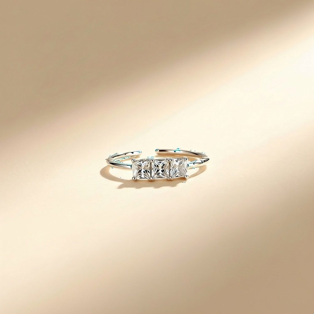 sleek minimal emerald baguette cz stainless steel nose ring showcasing three radiant emerald-cut cubic zirconia stones in a polished prong setting on an open adjustable band. crafted from high-quality stainless steel that is corrosion-free, fade-free, and built for lasting durability with a brilliant high-shine finish. delicate and sophisticated design perfect for comfortable daily wear or elegant accent on special occasions.
