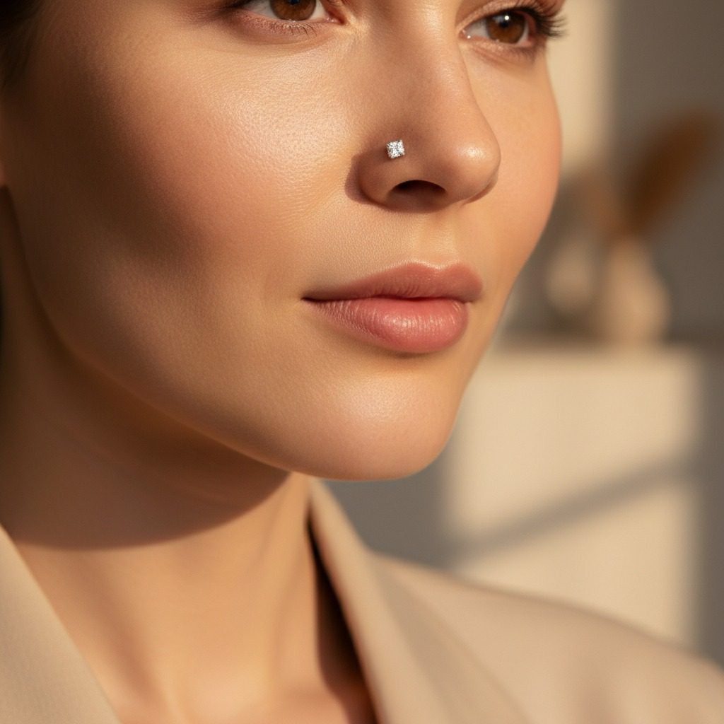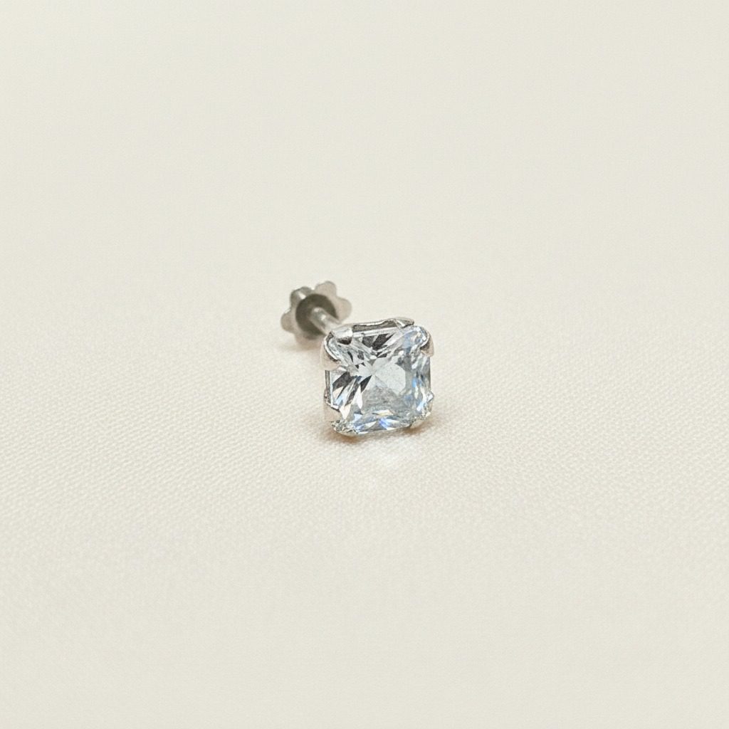 delicate minimal square cz stainless steel nose pin with sparkling clear cubic zirconia in a polished setting. crafted from high-quality stainless steel that is corrosion-free, fade-free, and highly durable for comfortable all-day wear. tiny and elegant design perfect for daily use or subtle occasion enhancement.