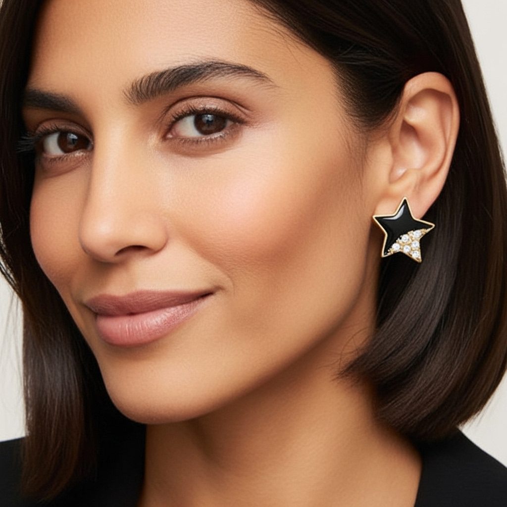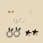 This versatile 5 in 1 stud earrings set features five stylish interchangeable designs including sparkling round stones, black enamel star with crystals, sleek heart with blue accent, classic pearl, and playful bunny hoop all crafted from high-quality stainless steel. corrosion-free, fade-free, and durable for everyday comfort and long-lasting shine. perfect for daily wear or adding a fashionable touch to any occasion.