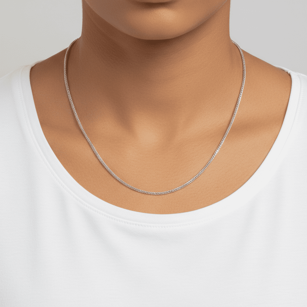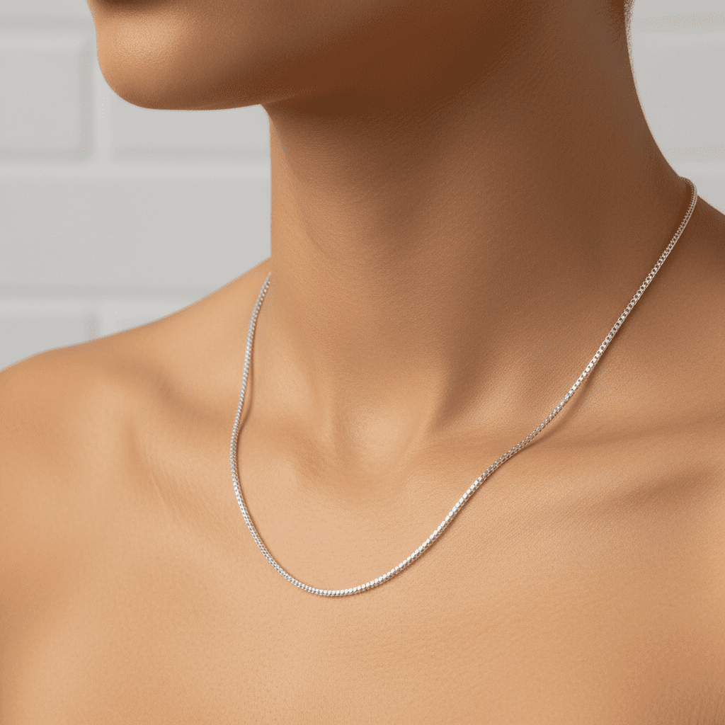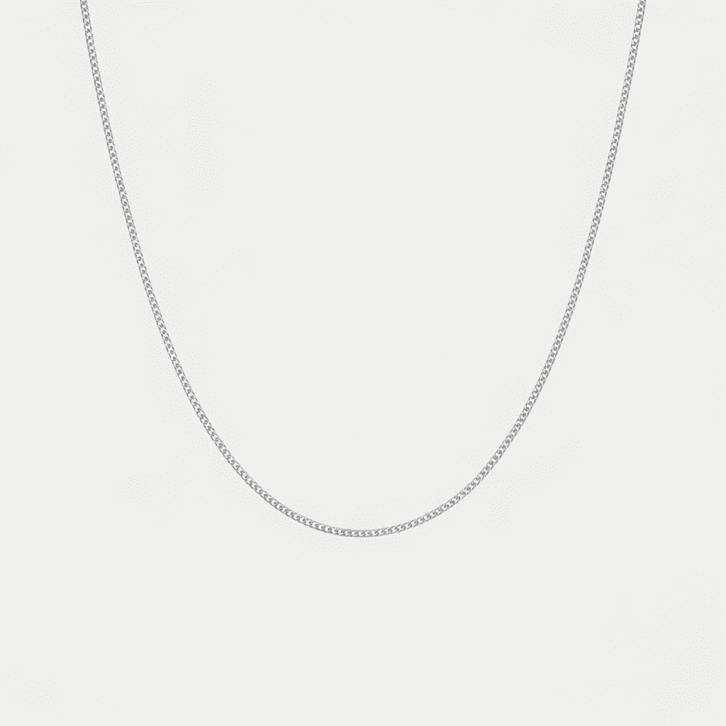 This silver box stainless steel chain features a minimalist geometric link design with a polished finish for a modern look. crafted from high-quality stainless steel, this durable piece is corrosion-free and fade-free to ensure long-lasting wear. its lightweight and versatile style makes it the perfect accessory for effortless daily wear or subtle occasion wear.