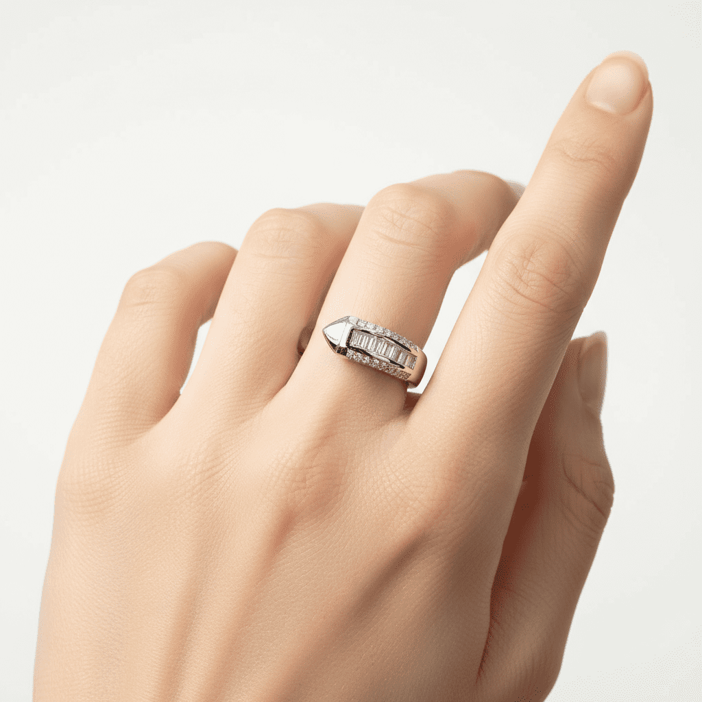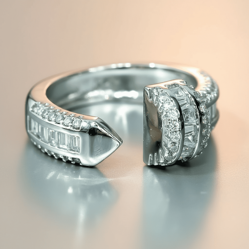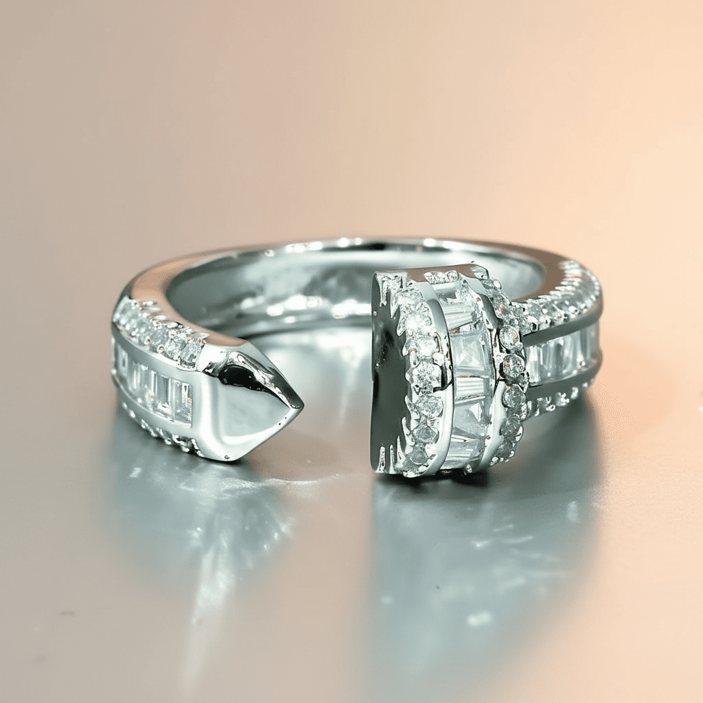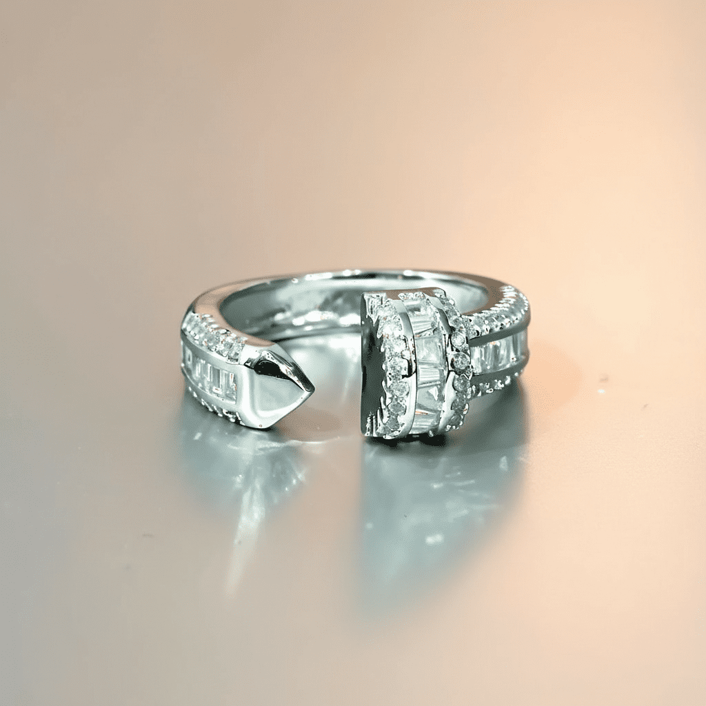 This captivating silver arrowhead women’s ring features a sleek open band with a pointed arrowhead tip and a bold cluster of baguette and round cubic zirconia stones for dazzling sparkle. Crafted from high-quality stainless steel with premium silver plating, it is corrosion-free, fade-free, and durable for long-lasting brilliance. Its edgy yet elegant design delivers modern sophistication perfect for daily wear or statement-making occasions.