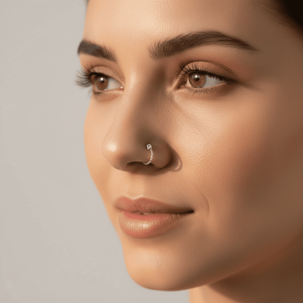 This elegant silver twisted princess nose ring features a sparkling princess-cut stone centered on a textured twisted band for refined minimal charm. crafted from high-quality stainless steel with a polished silver finish, it remains corrosion-free, fade-free, and durable for comfortable daily wear. ideal for adding subtle sophistication and everyday sparkle to casual or special occasion looks.