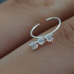 Elevate your everyday look with a touch of shimmer. This delicate, silver-toned hoop features a trio of brilliant-cut crystals designed to catch the light from every angle. Its seamless, minimalist design ensures a comfortable fit, making it the perfect staple for your jewelry collection.