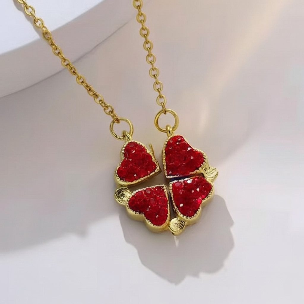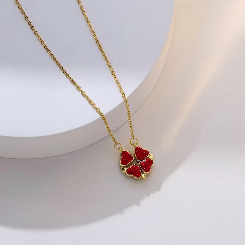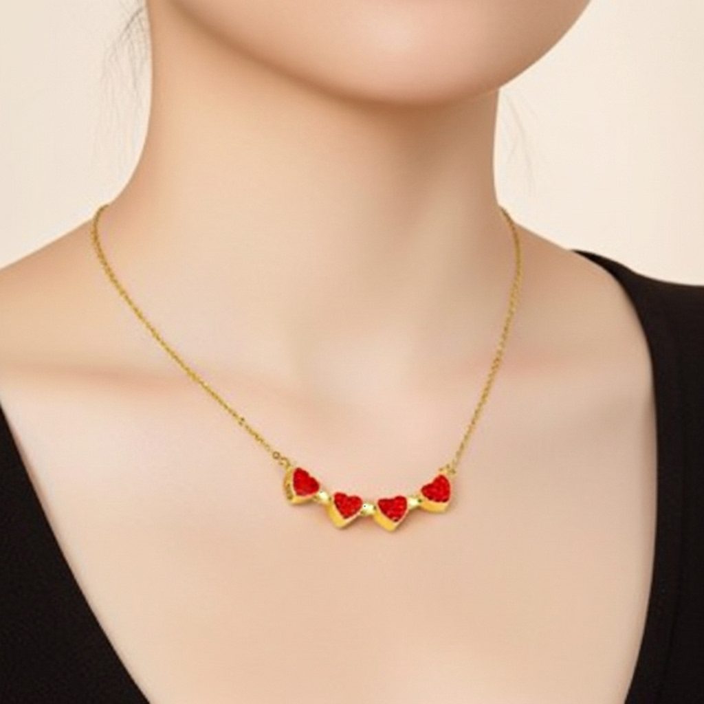 This women’s red heart bar necklace in stainless steel features a delicate horizontal bar adorned with three sparkling red heart accents for a sweet and modern romantic look. Crafted from high-quality stainless steel, it offers corrosion-free, fade-free, and durable wear perfect for daily use or special occasions. The polished gold-tone finish and lightweight chain provide comfortable everyday elegance with charming feminine appeal.